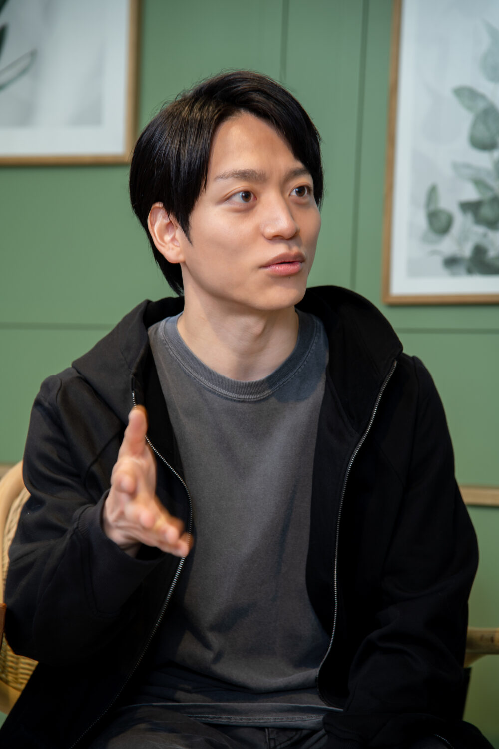 今江 神保さんとも初共演で、僕は人見知りであまり自分から話せないから、待機場所で一緒におったときも、最初は対面に座ったままずっと黙ってたんですよ。それでどうしようと思ったら、神保さんから話し掛けてくれて、いろいろな話題を振ってくださって。そこから打ち解けて、結構お話しするようになりましたね。カッコいい方で、まとっている雰囲気がズルいなって思いました。何か盗めるものがあったら絶対に盗んでやろうという思いでずっと拝見していたんですけど、立ってる姿も、表情も、雰囲気が全てカッコよくて、“ああなりたいな”って本気で思いました。それと、神保さんは割と「よーい、スタート!」の直前まで普通に話すタイプの方で、ずっと笑ってました。